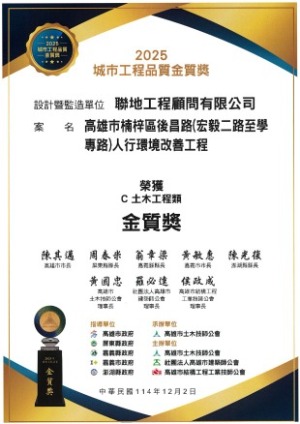 | 城市工程品質金質獎-土木工程類金質獎 高雄市第108期市地重劃區崇實新村西幹道開闢工程 |