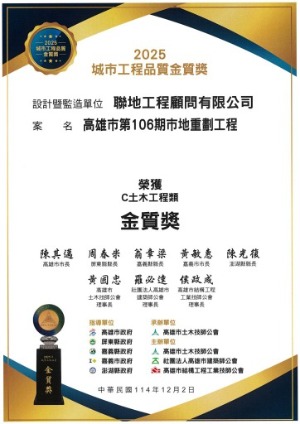 | 國家卓越建設獎-最佳施工品質類-公共建設類 卓越獎 鼓山區龍德新路南側道路開闢及往東延伸跨越愛河橋梁工程 |