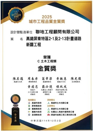 | 城市工程品質金質獎-土木工程類金質獎 高鐵屏東特區2-1及2-13計畫道路新闢工程 |